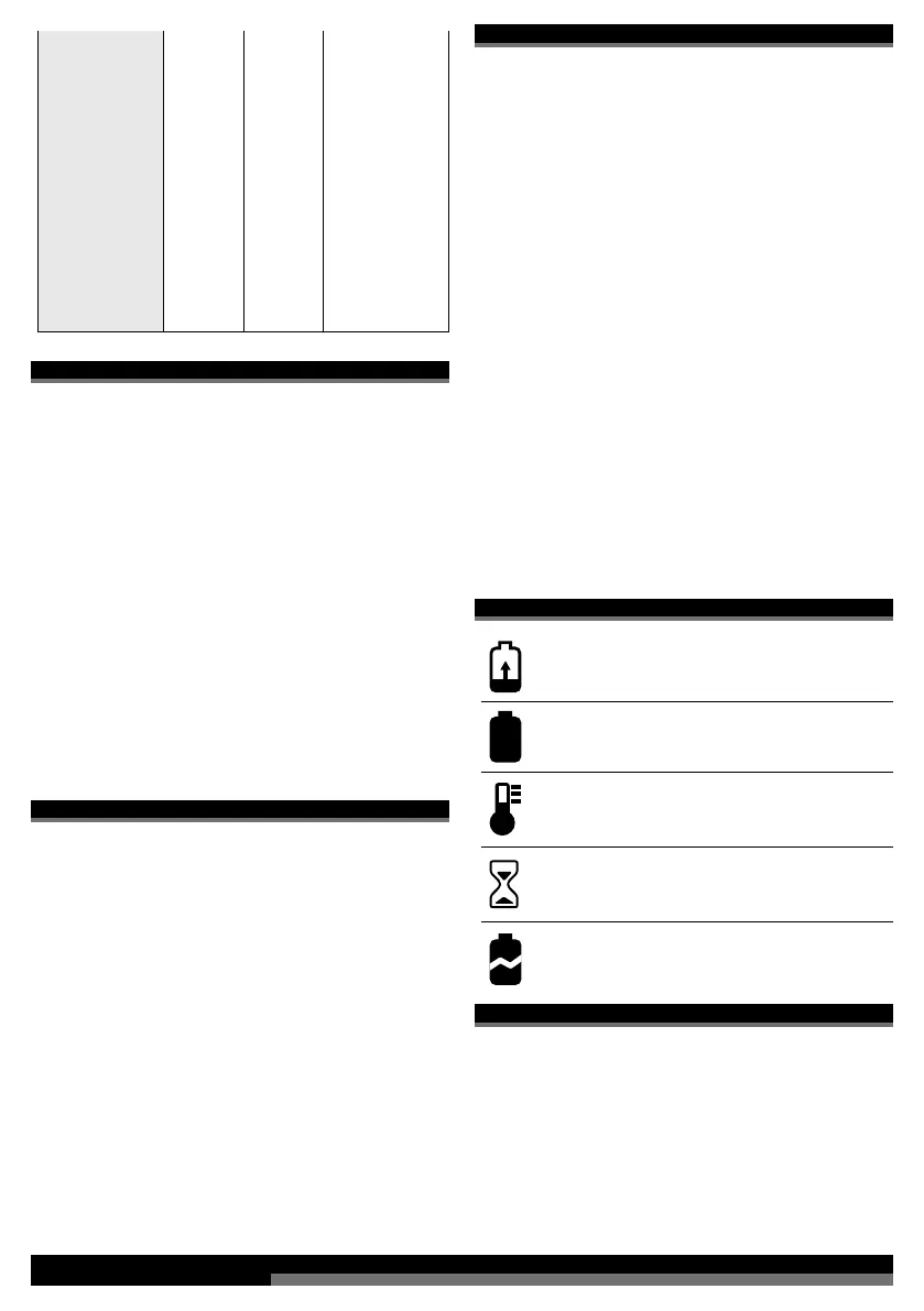 lielā mērā akumulātors ir izlādējies (1,5 Ah akumulātoram).