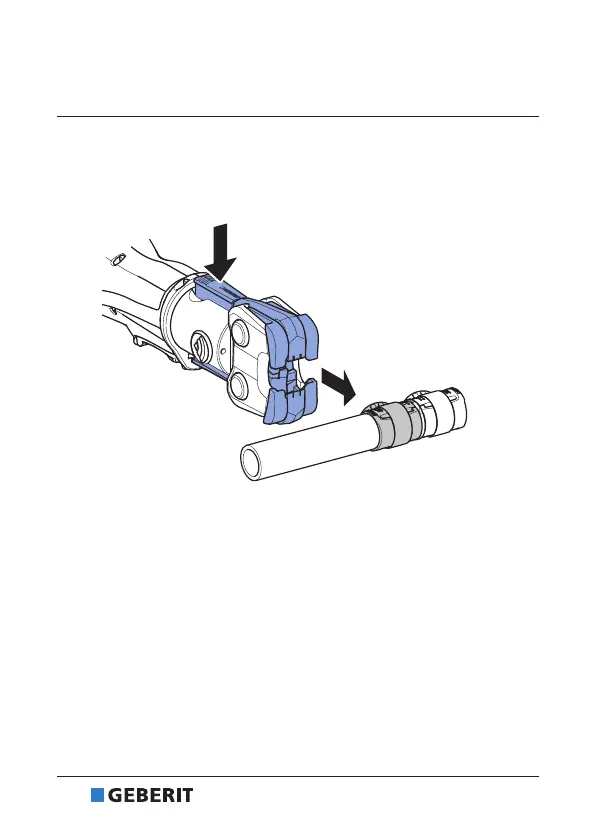 1 Para abrir la mordaza de compresión Geberit, apretar los