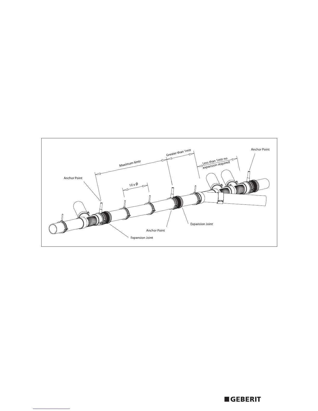 the expansion fitting must be fitted at a maximum of