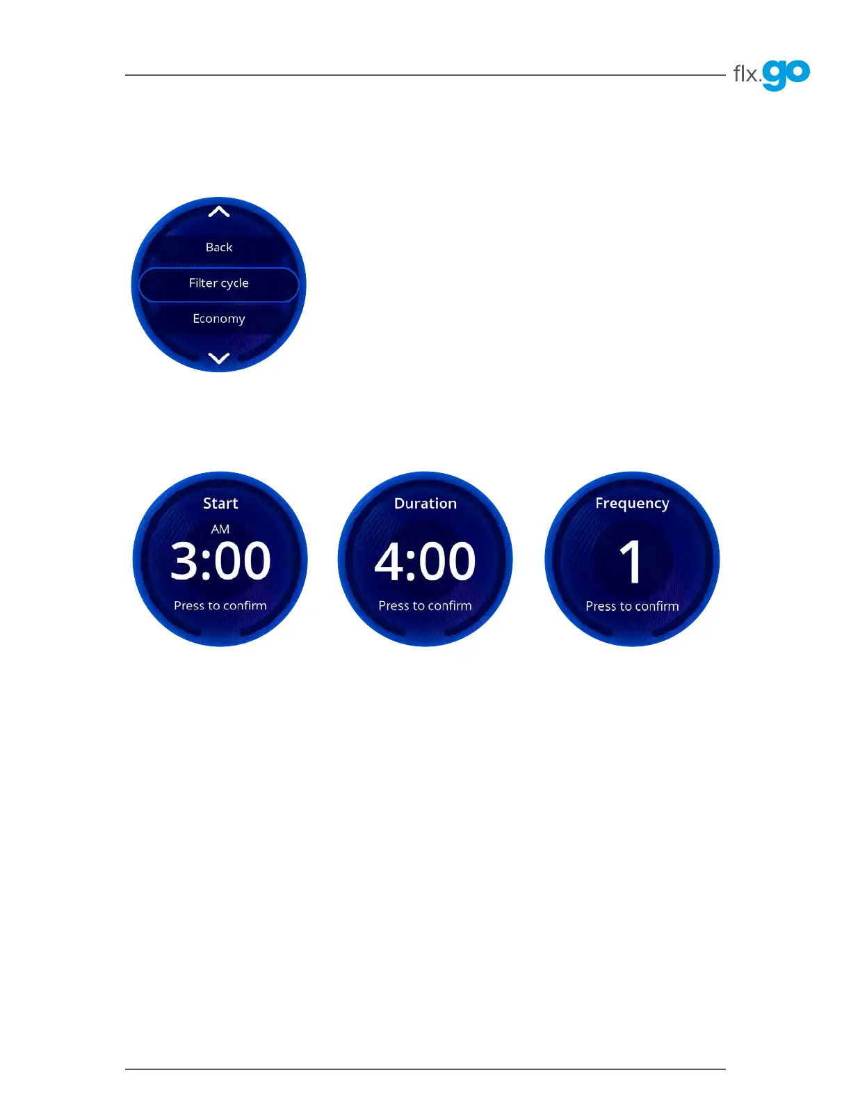 To program the filter cycle, you must enter these settings: Start time, Duration and Frequency� Once you have