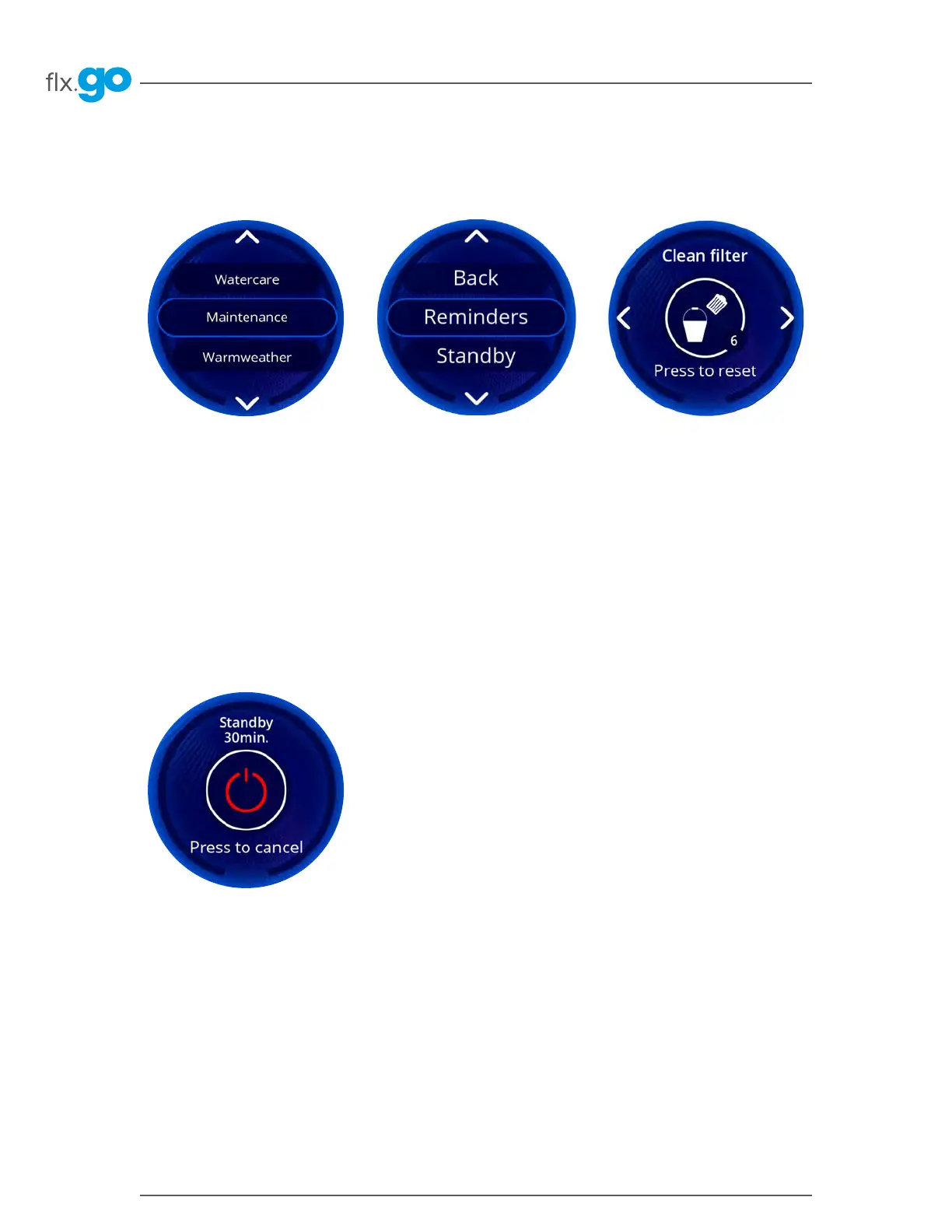 The flx�go keypad will provide reminders about maintenance required on your hot tub, like rinsing or cleaning the filter�