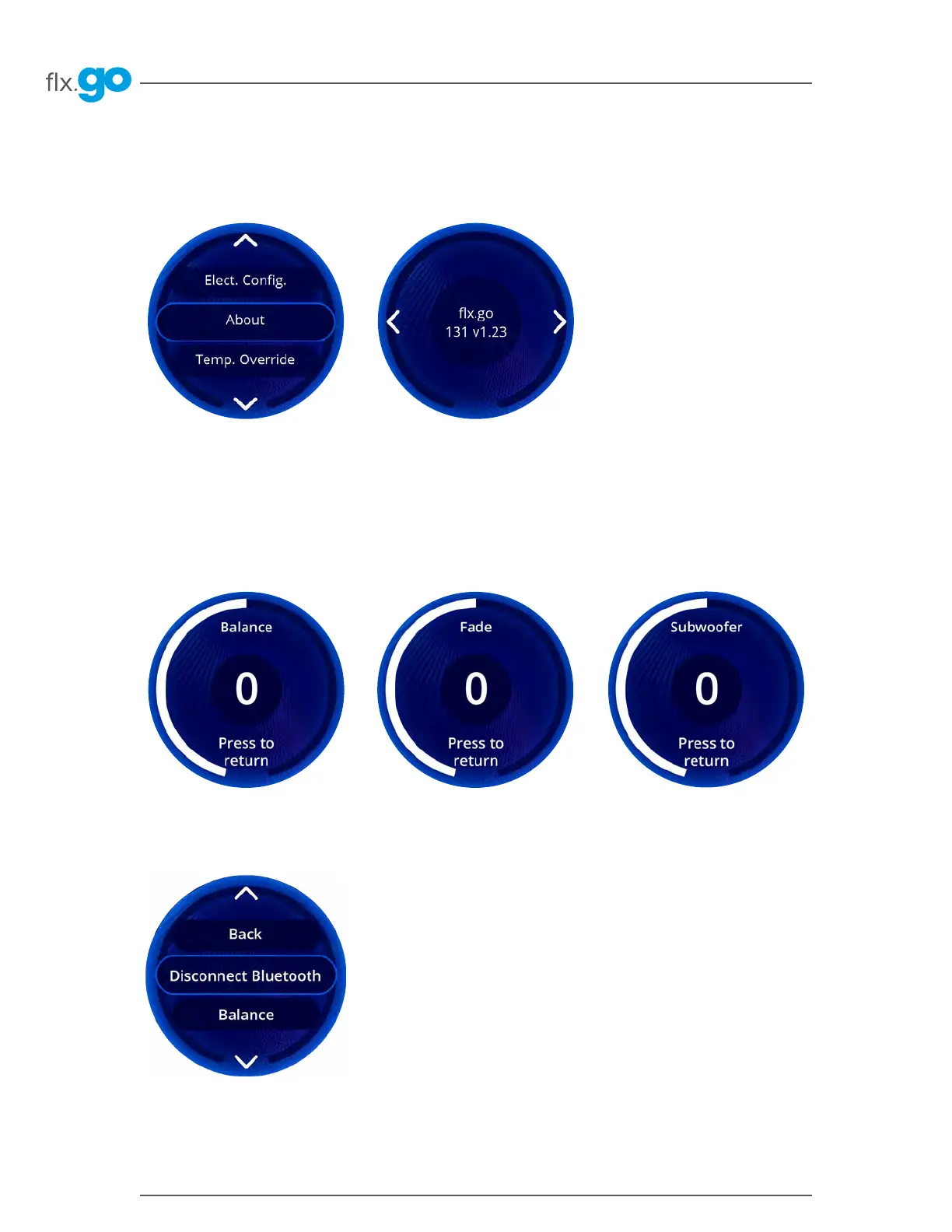 The flx�go can be used with the in�stream 2 audio system� The Audio section in the Settings menu gives you the option