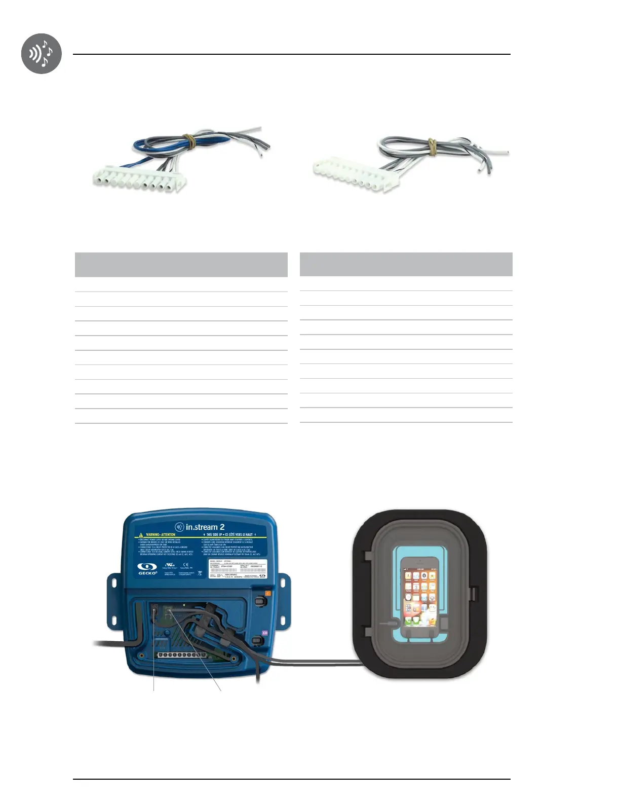 To connect the docking station into the in.stream 2, simply insert the USB cable into the USB receptacle and the 1/8"