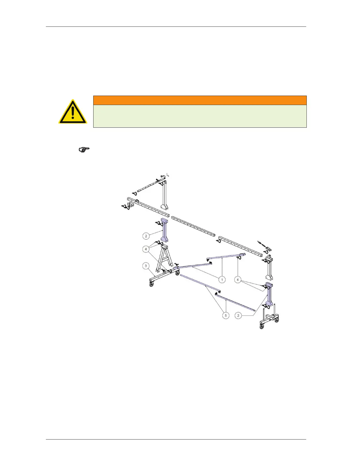 ¾ Insert braces (1) and (5) and secure using bolts (4) and clamps