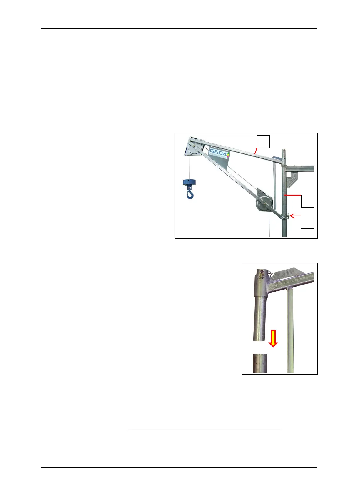 The pivot arm for the scaffolding lifts GEDA MINI 60 S and