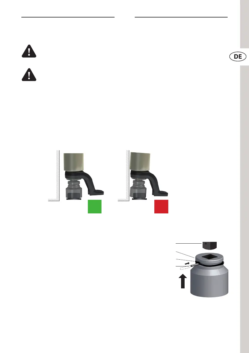 Setzen Sie die Kraftnuss IMMER korrekt und gerade auf die