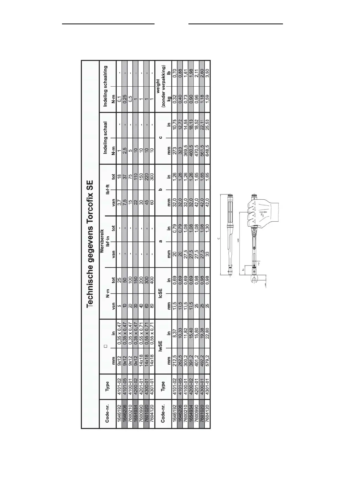 Gedore Torcofix SE - Technische Gegevens TORCOFIX SE