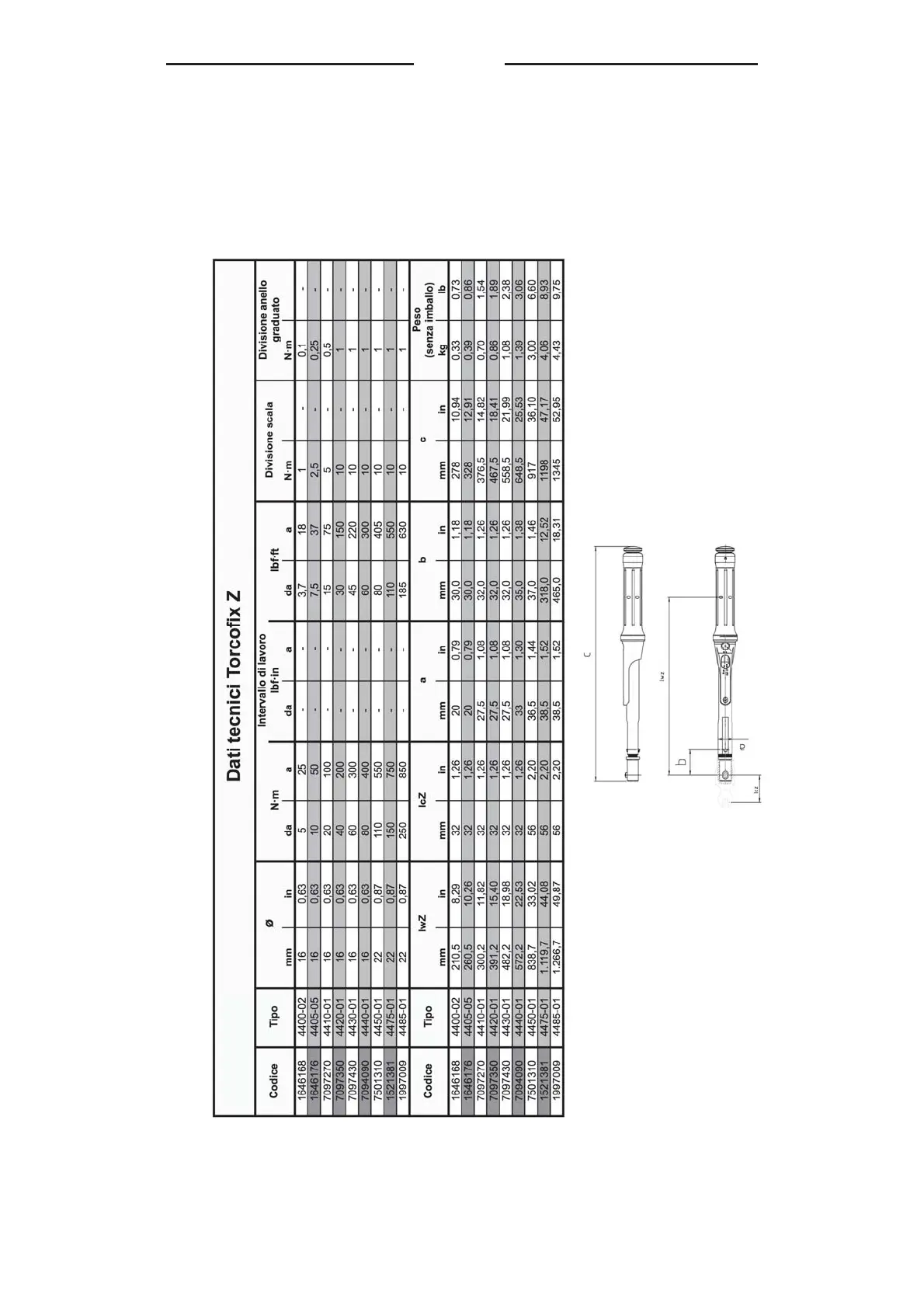 Gedore Torcofix SE - 7 Dati Tecnici; Dati Tecnici TORCOFIX Z
