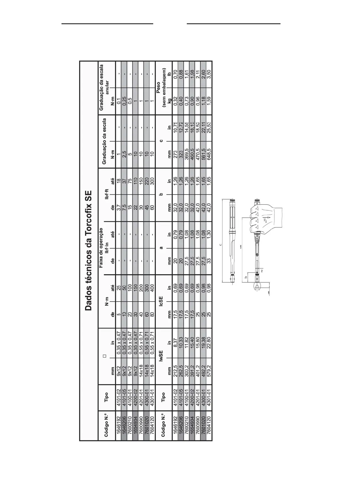 Gedore Torcofix SE - Dados Técnicos da TORCOFIX SE