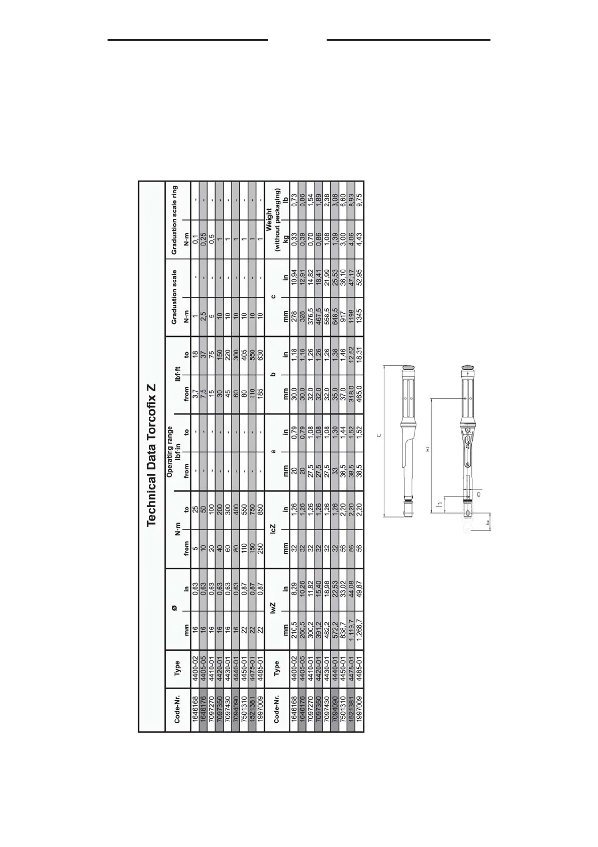 Gedore Torcofix SE - Technical Data; Technical Data, TORCOFIX Z