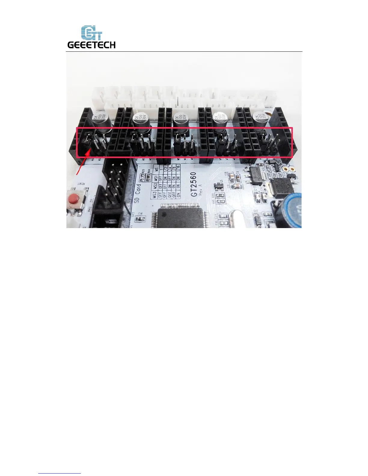 Step2. Plug the 4 A4988 into the stepper motor driver slot. Mind the directions of