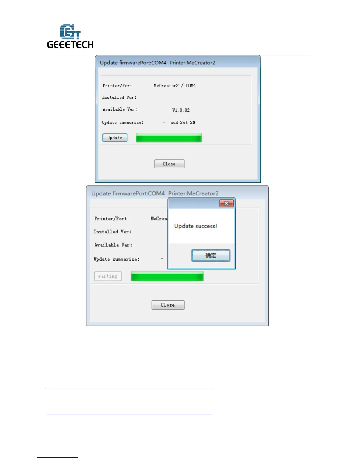 Click ‘ok’ and ‘Close’ on the windows to complete the firmware upgrade.