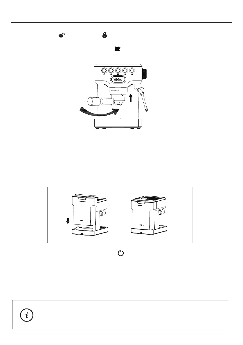 holder (No coffee powder added) into the machine, place a cup on Drip tray then