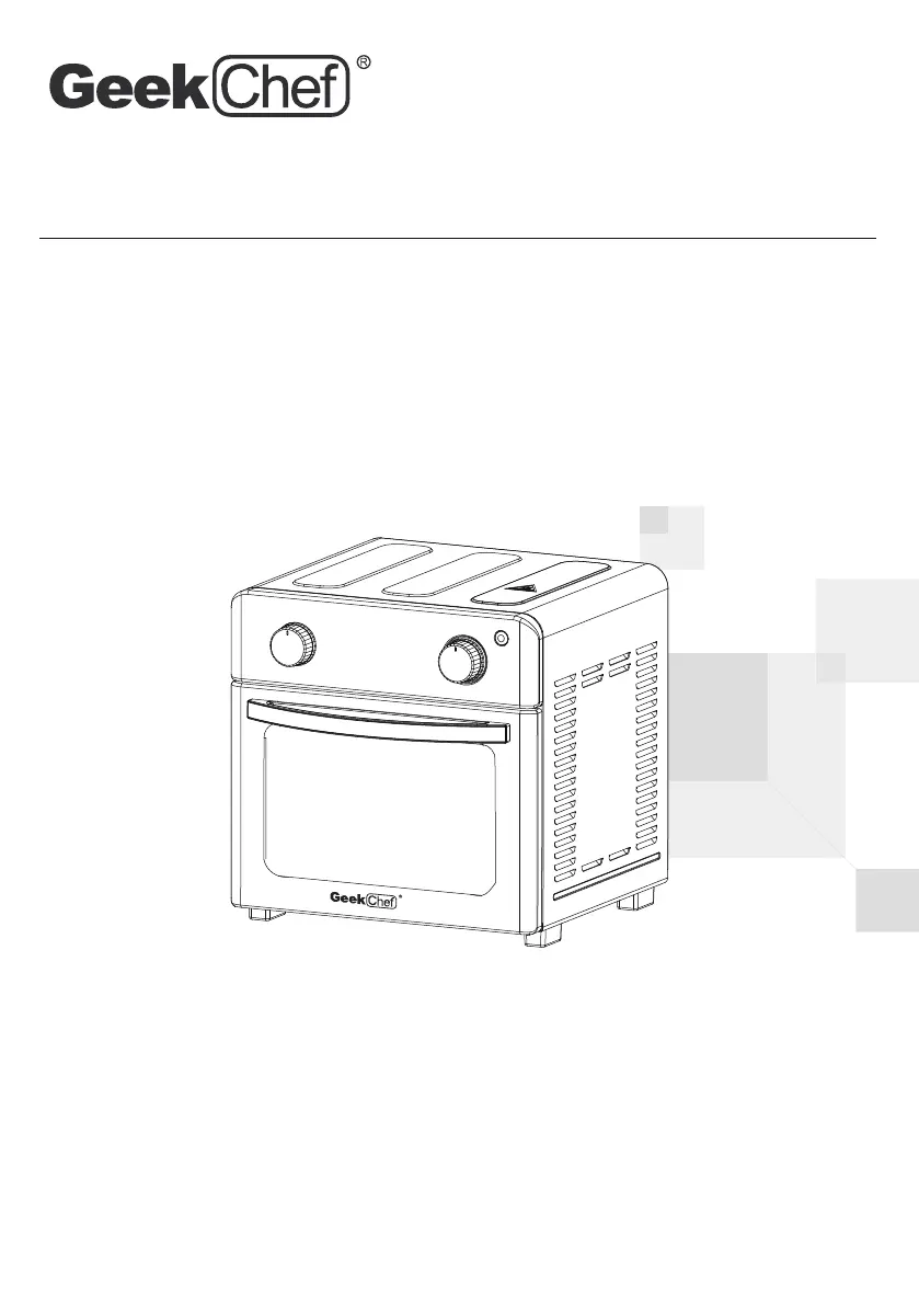 If you see black smoke coming from your GeekChef Oven, immediately turn off and unplug the oven. Allow it to cool to room temperature and wait for the smoke to clear before opening the door or removing any trays, baskets, or racks.