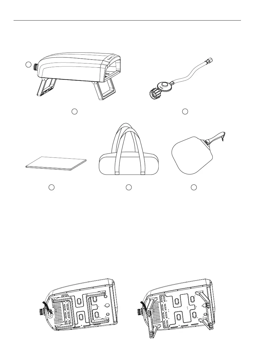 1.Pizza oven 2.Control knob & igniter 3.Regulator & hose