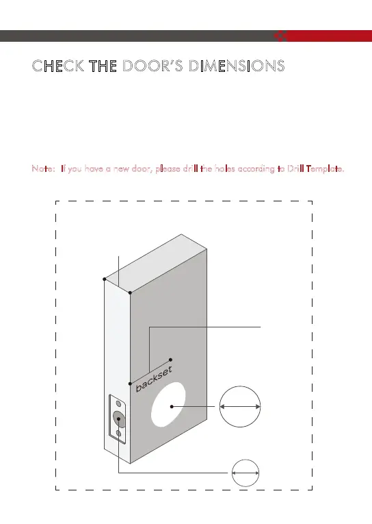 : If you have a new door, please drill the holes according to Drill Template.