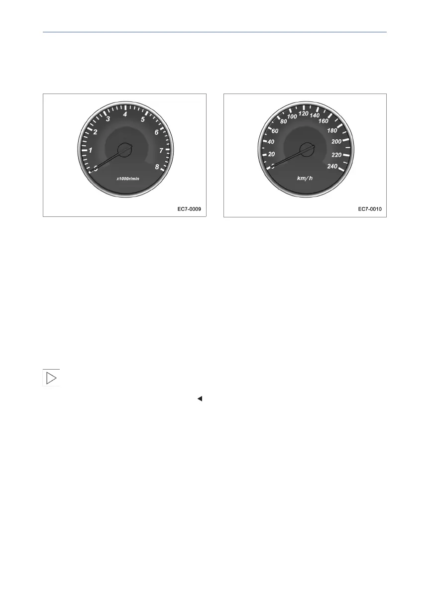 The tachometer indicates the engine speed in