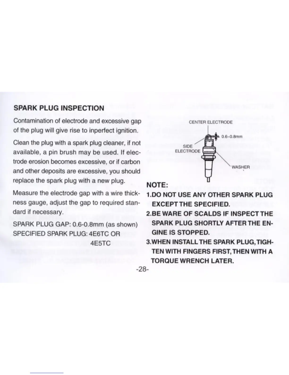 Geely JL50QT-21 - Spark Plug Inspection and Gap Adjustment