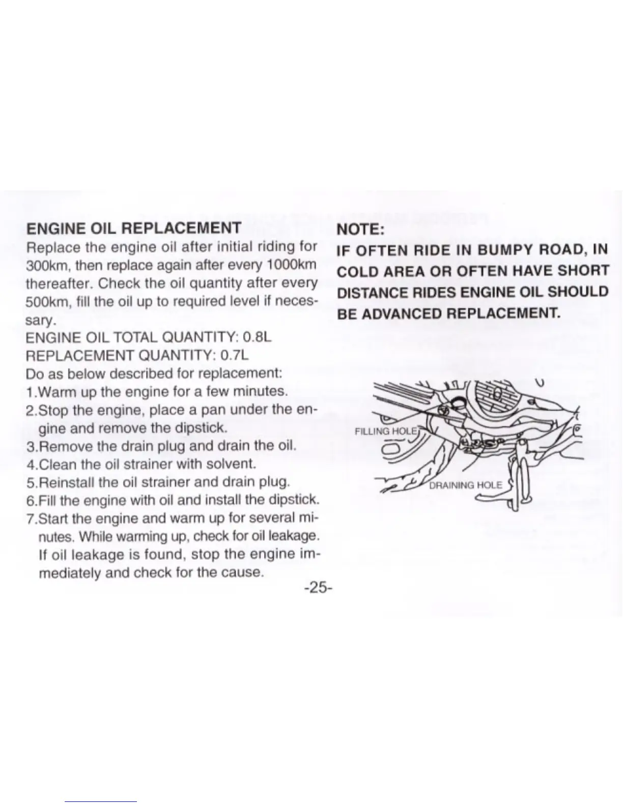 Geely JL50QT-21 - Engine Oil Replacement and Level Checks