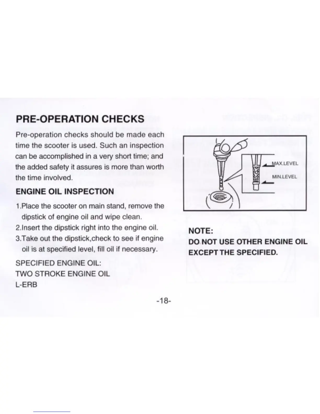 Geely JL50QT-21 - Pre-Operation Inspection Routine; Engine Oil Level Inspection