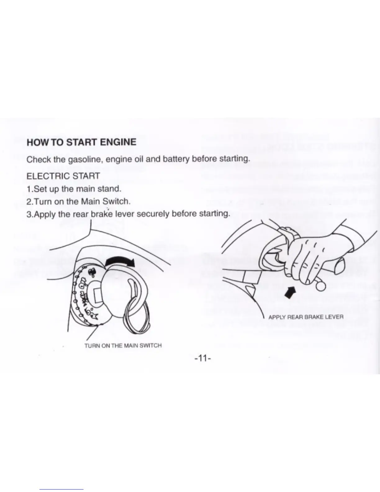 Geely JL50QT-21 - How to Start the Engine; Pre-Start Checklist; Electric Start Procedure