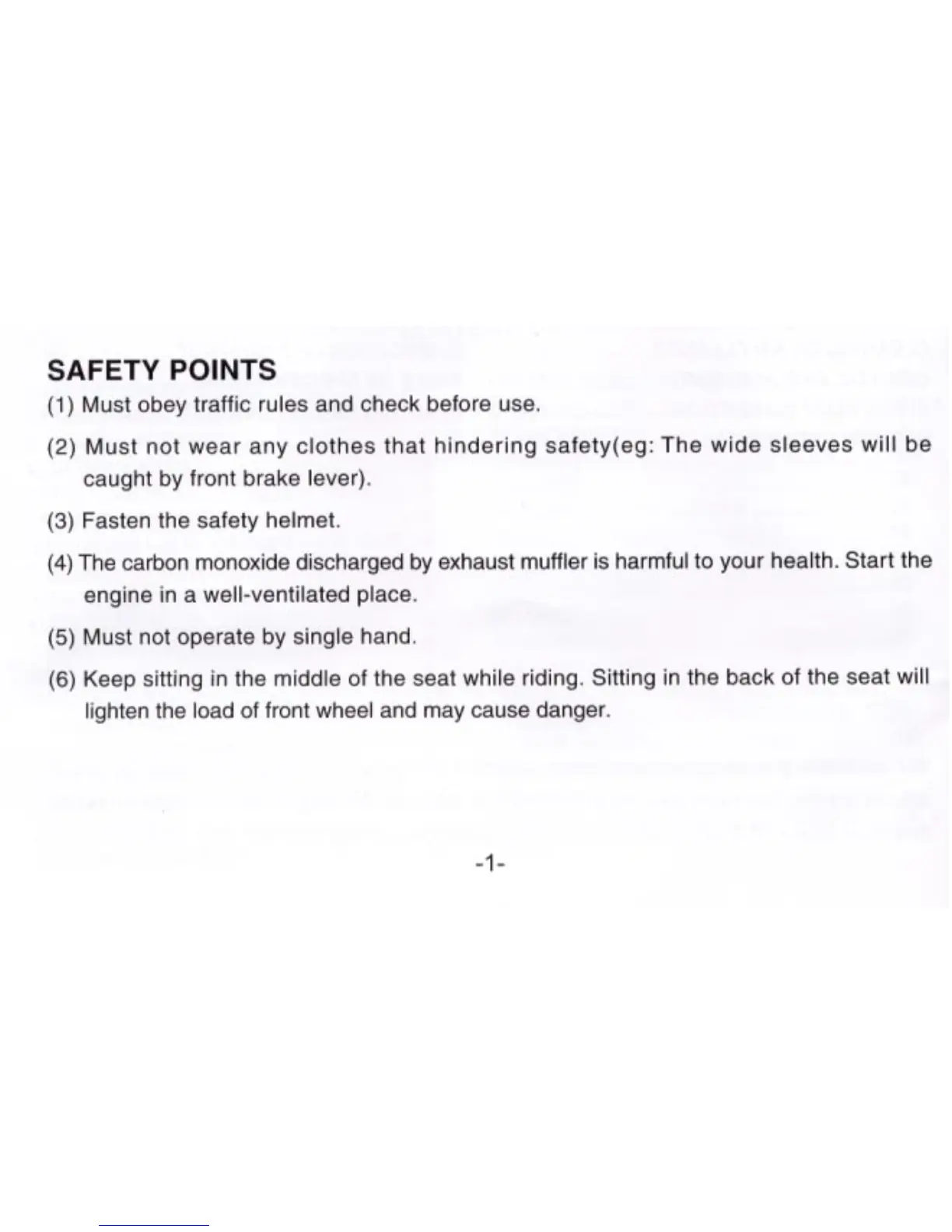 Geely JL50QT-21 - General Safety Precautions and Riding Rules