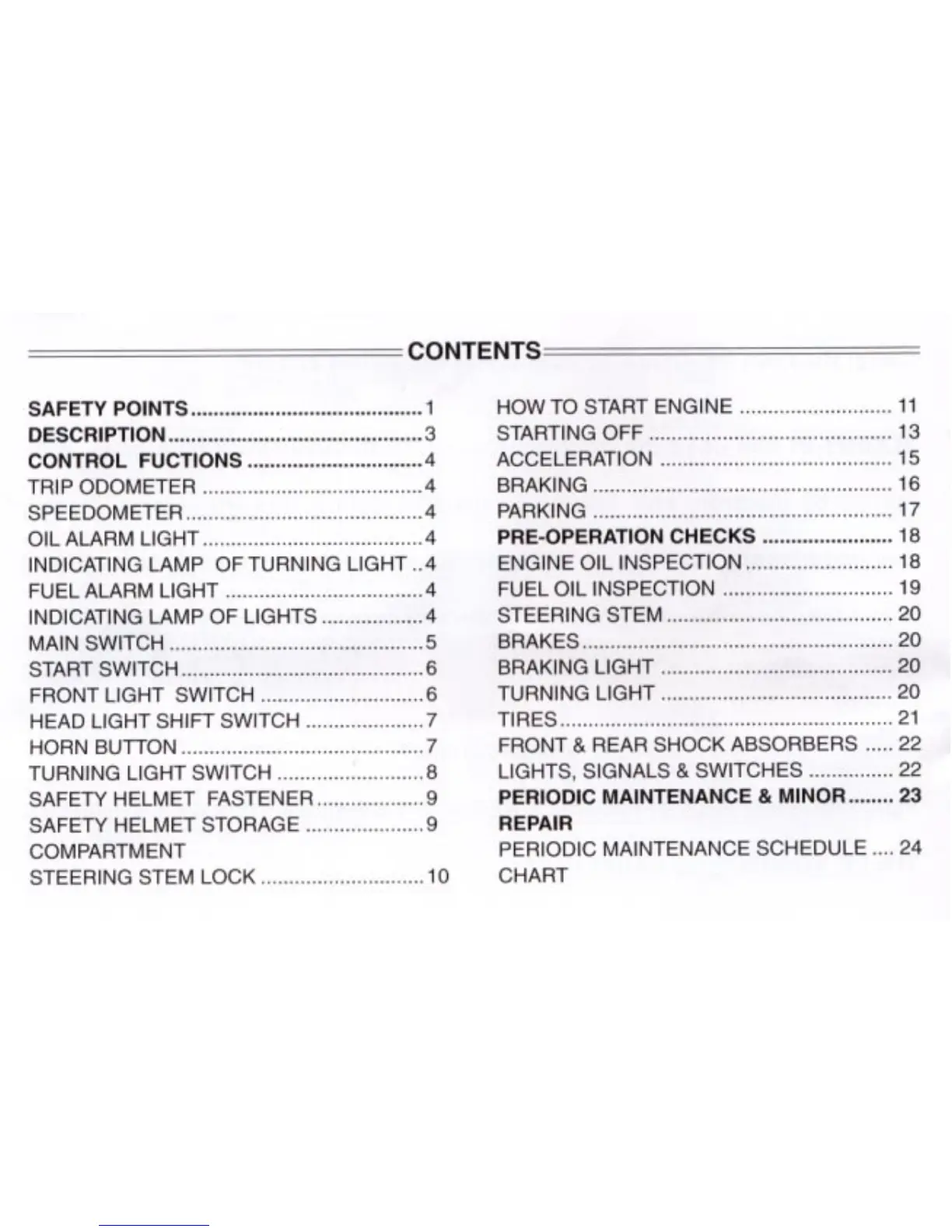Geely JL50QT-21 - Contents