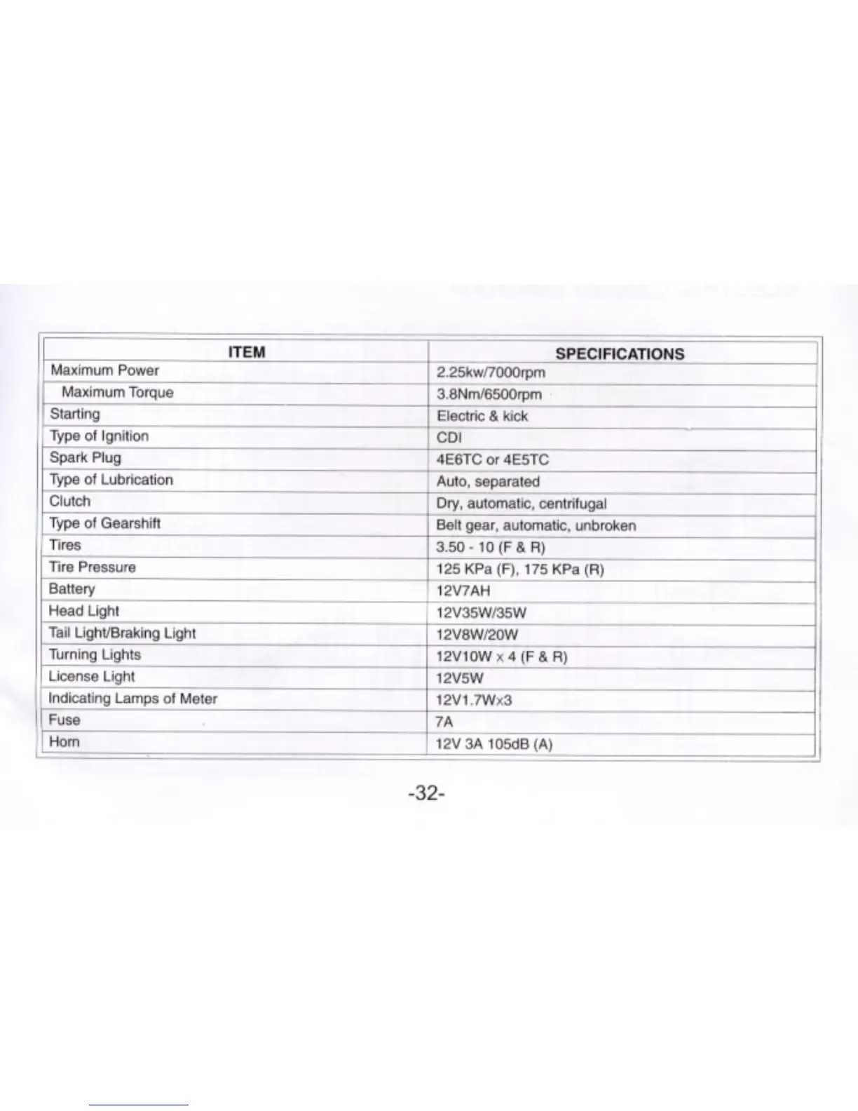 Geely JL50QT-21 - Scooter Specifications and Technical Data; Engine and Performance Specifications