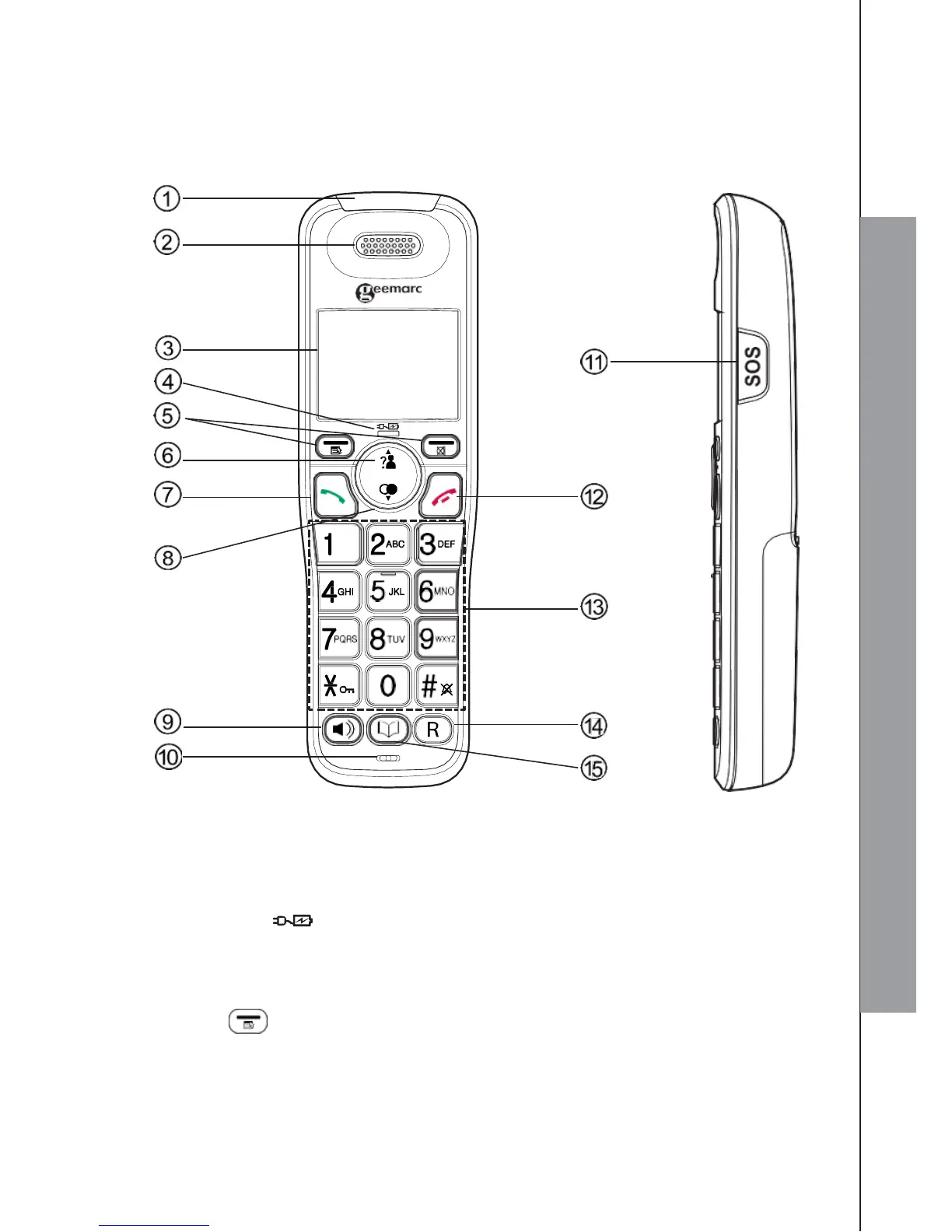 During a call: Press to access Intercom / Phonebook / Redial list / Call list.