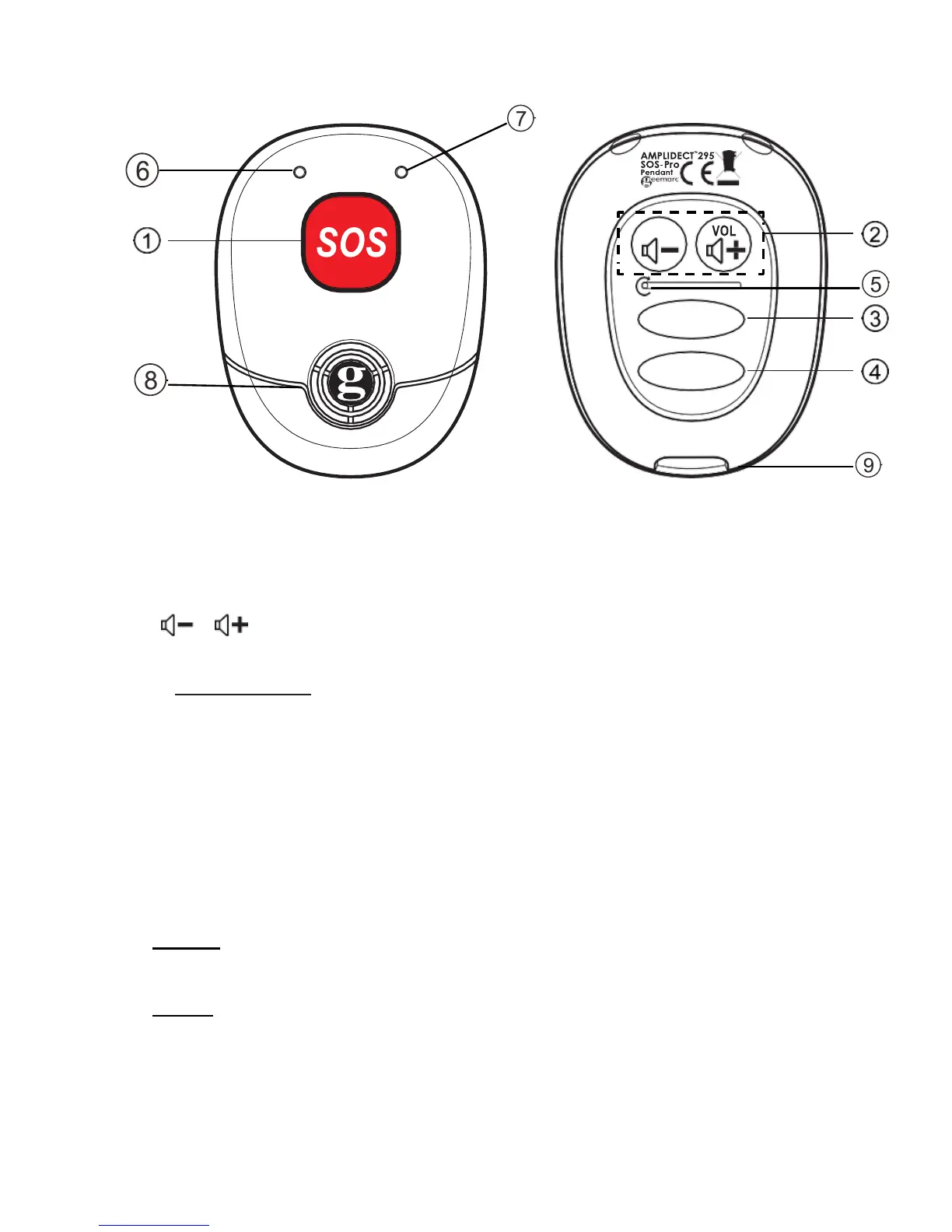- Short flashing: idle mode and off the charger, the pendant is in Standby mode.