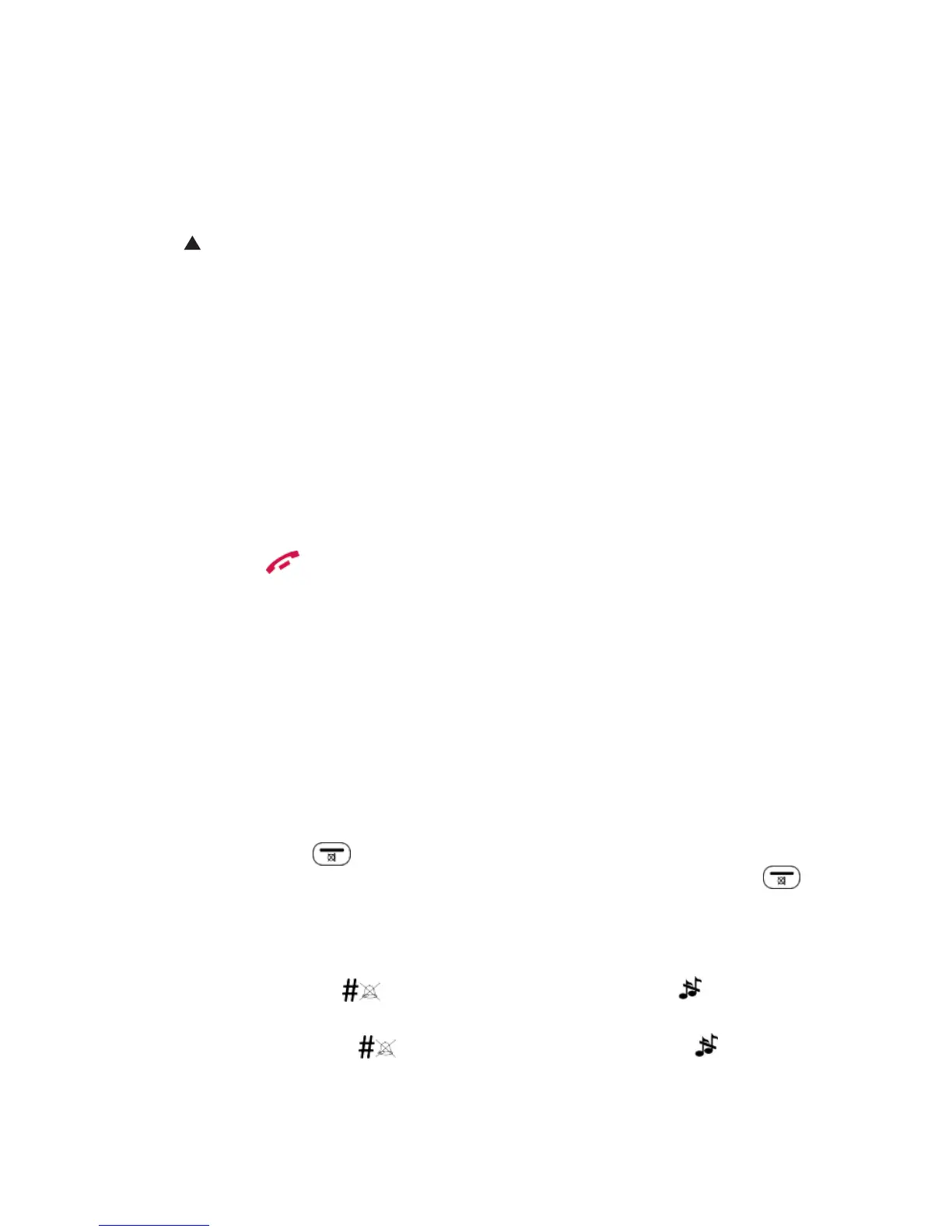 In idle mode, press and hold to turn off the handset ringer. The will be