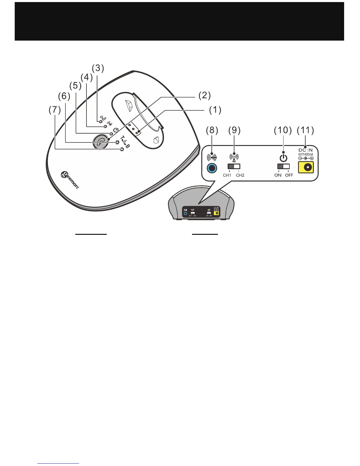 (6) LED Indicator (Yellow): Treble enhanced