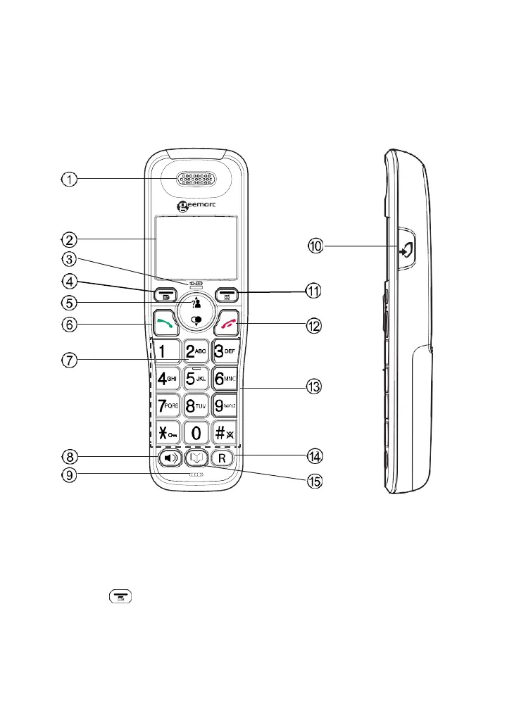 During a call: Press to access Intercom / Phonebook / Redial list / Call list.
