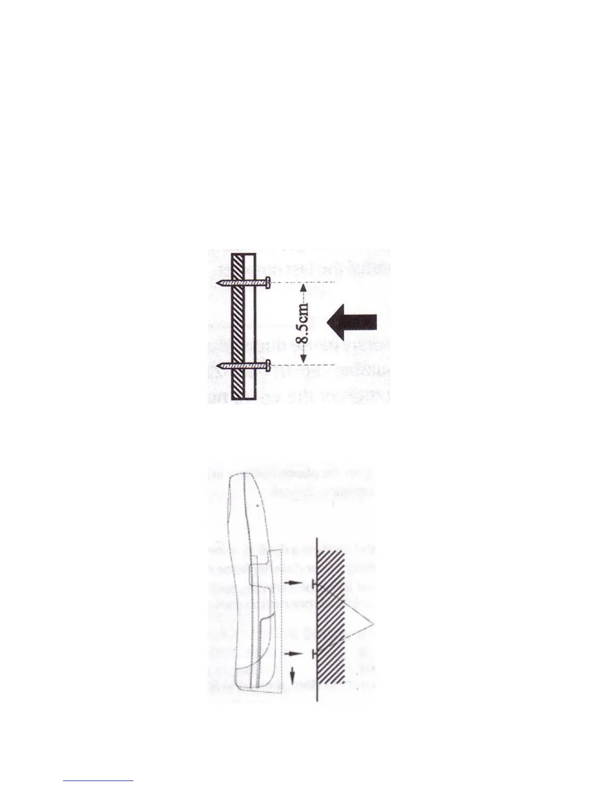 - Make two holes in the wall 8.5cm apart located on a vertical centre line.