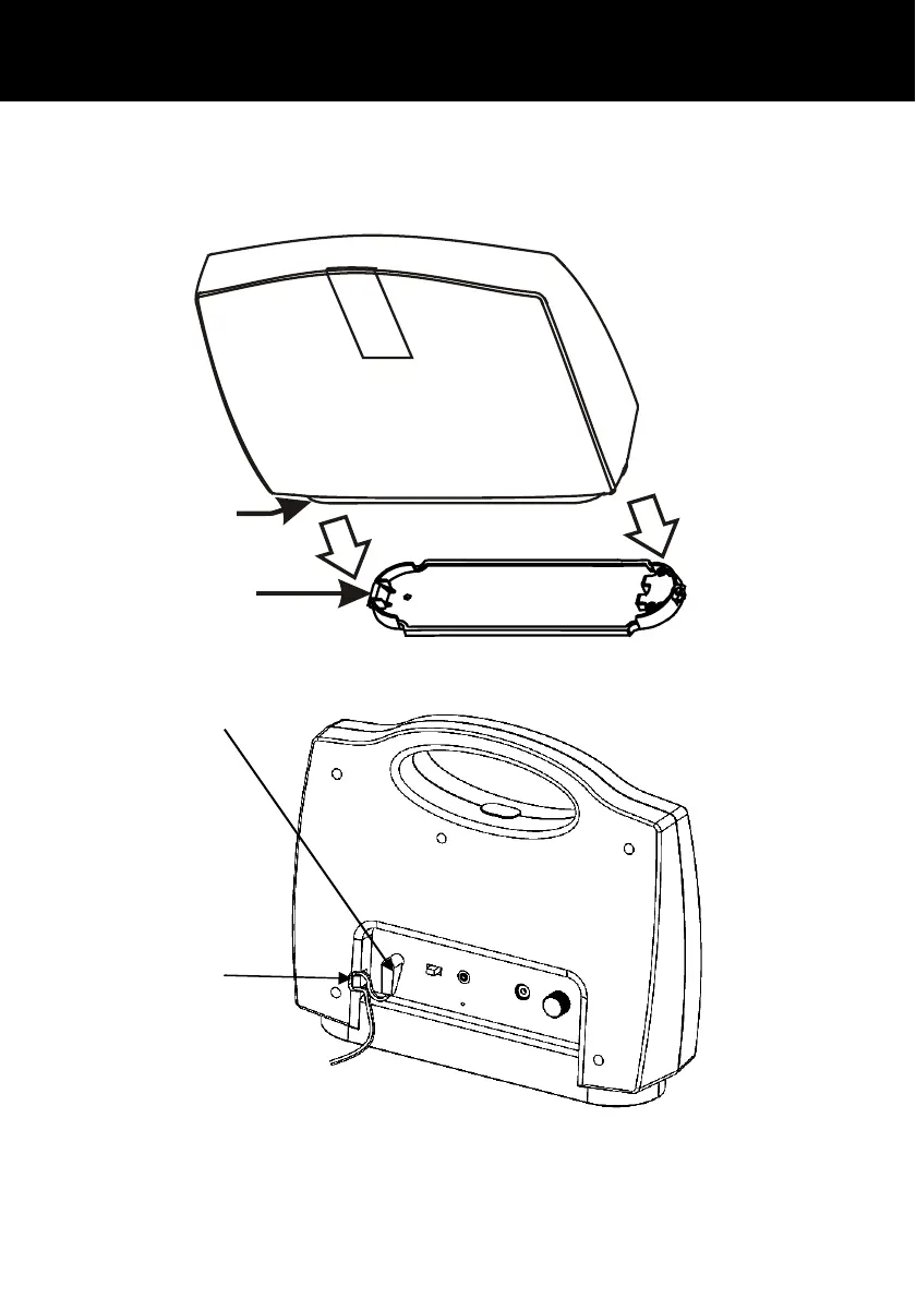 Replace the base plate by placing the hook found on the bottom