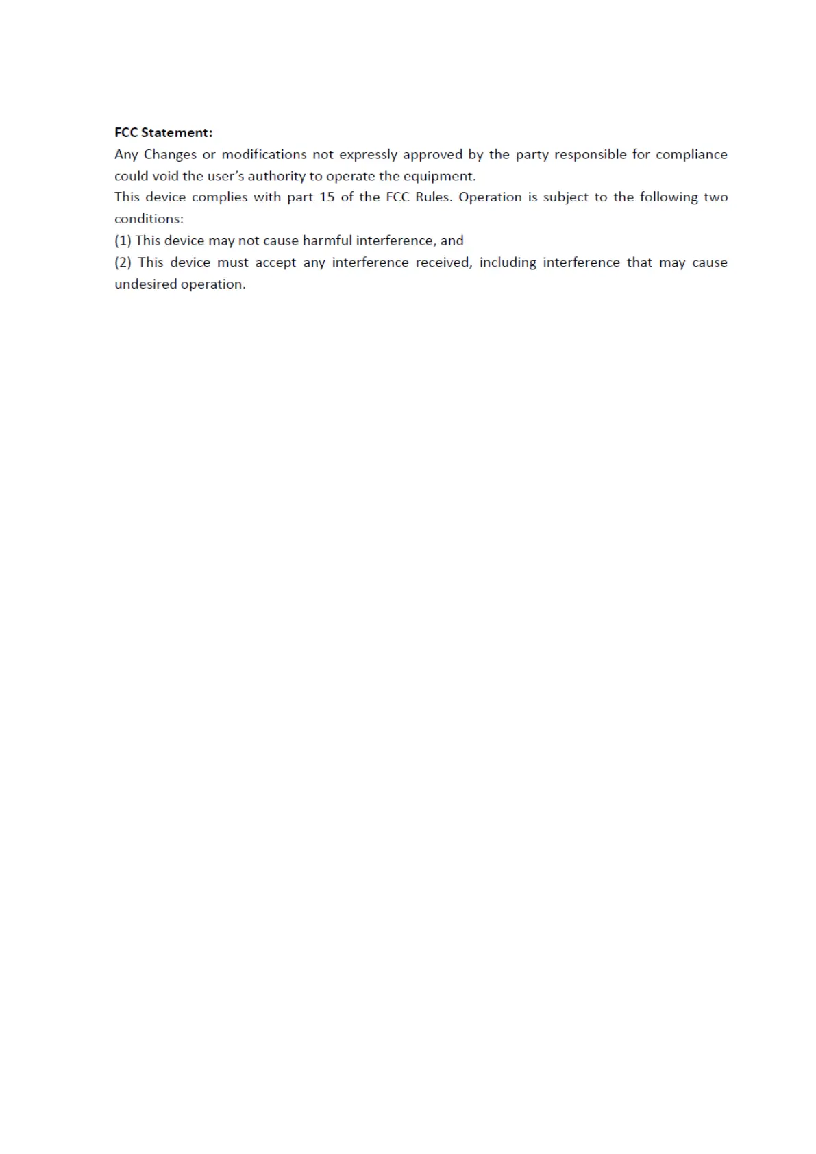 This device complies with part 15 of the FCC Rules. Operation is subject to the following