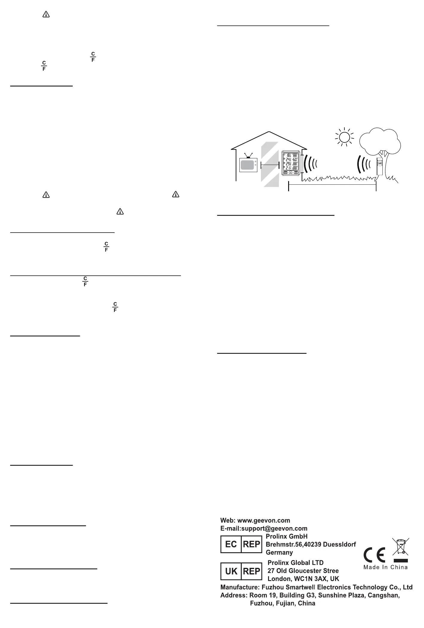 b. Display unit and outdoor sensor must be within 200ft (60m)