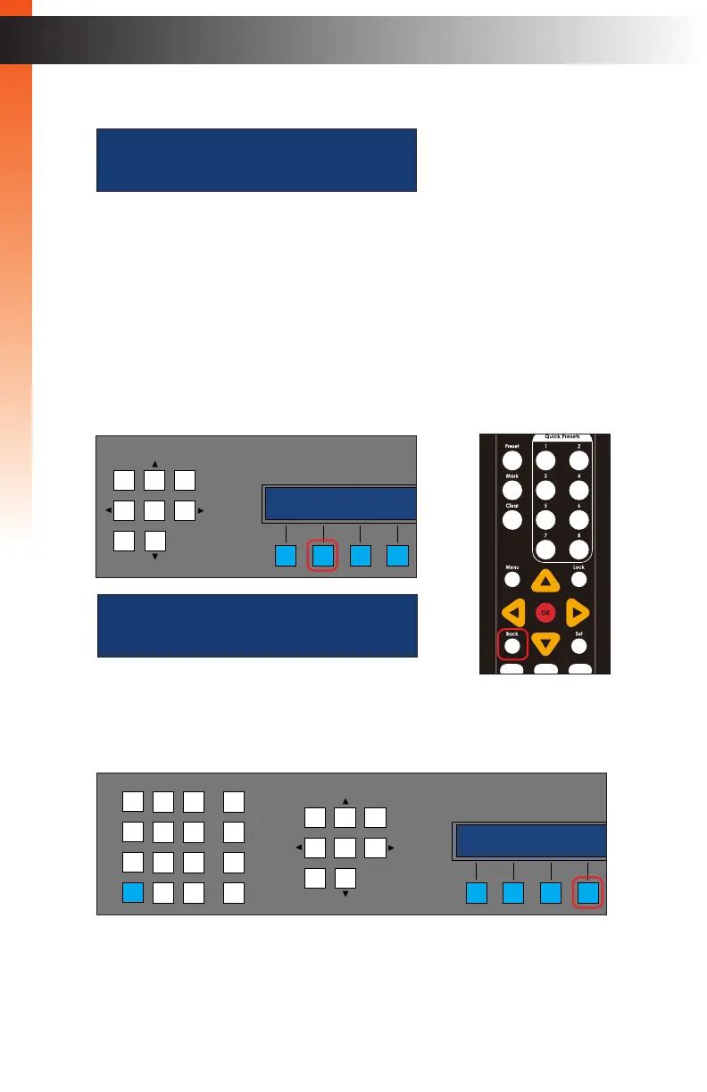 6. Press the BACK button on the front panel or on the IR remote control.