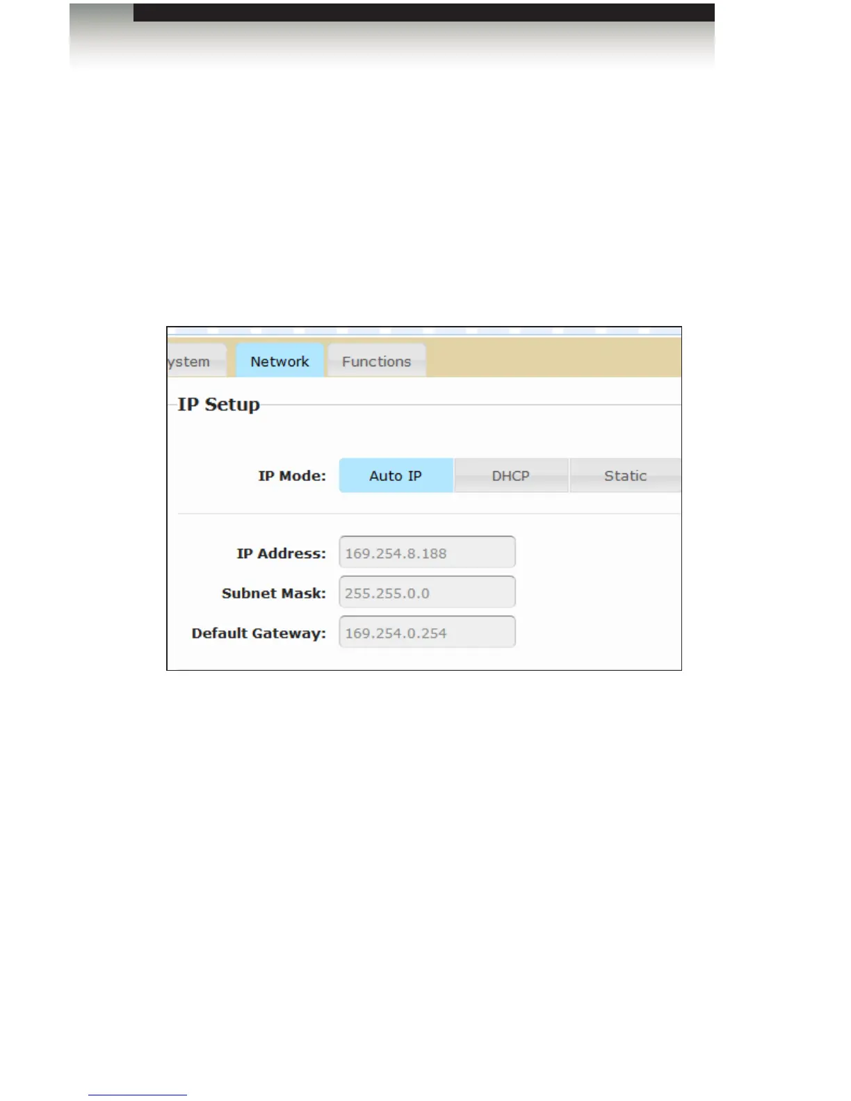 2. Click the Network tab. The current IP Mode will be highlighted within the IP Setup