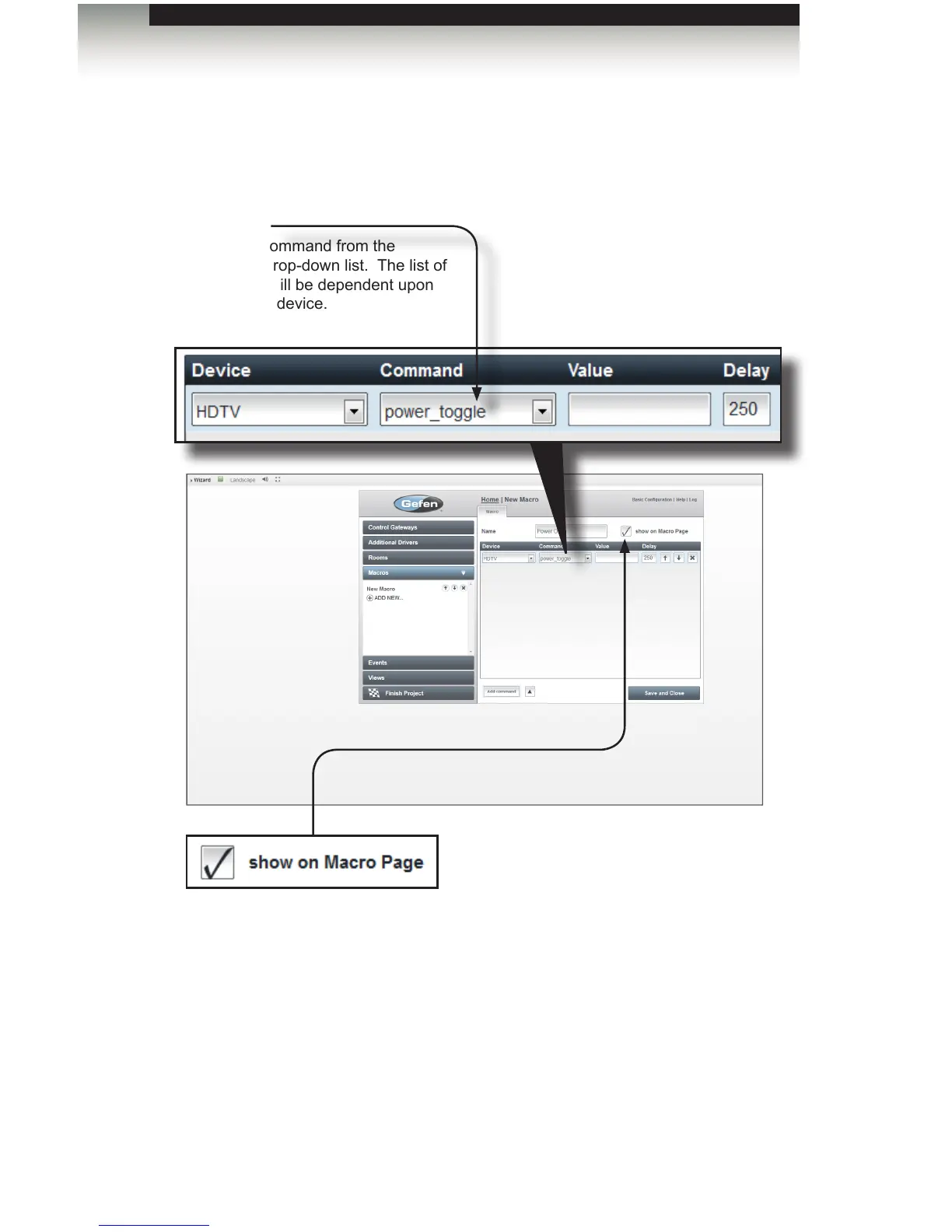4. Select the device (HDTV) that will receive the command from the Device drop-down