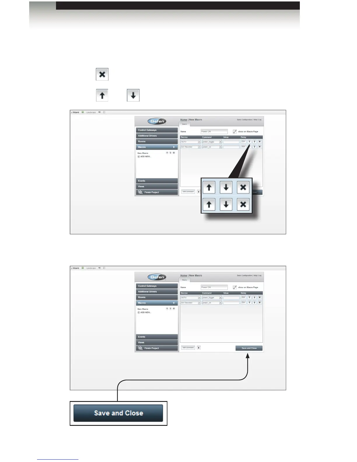 • Click the and buttons to change the order of devices within the macro.