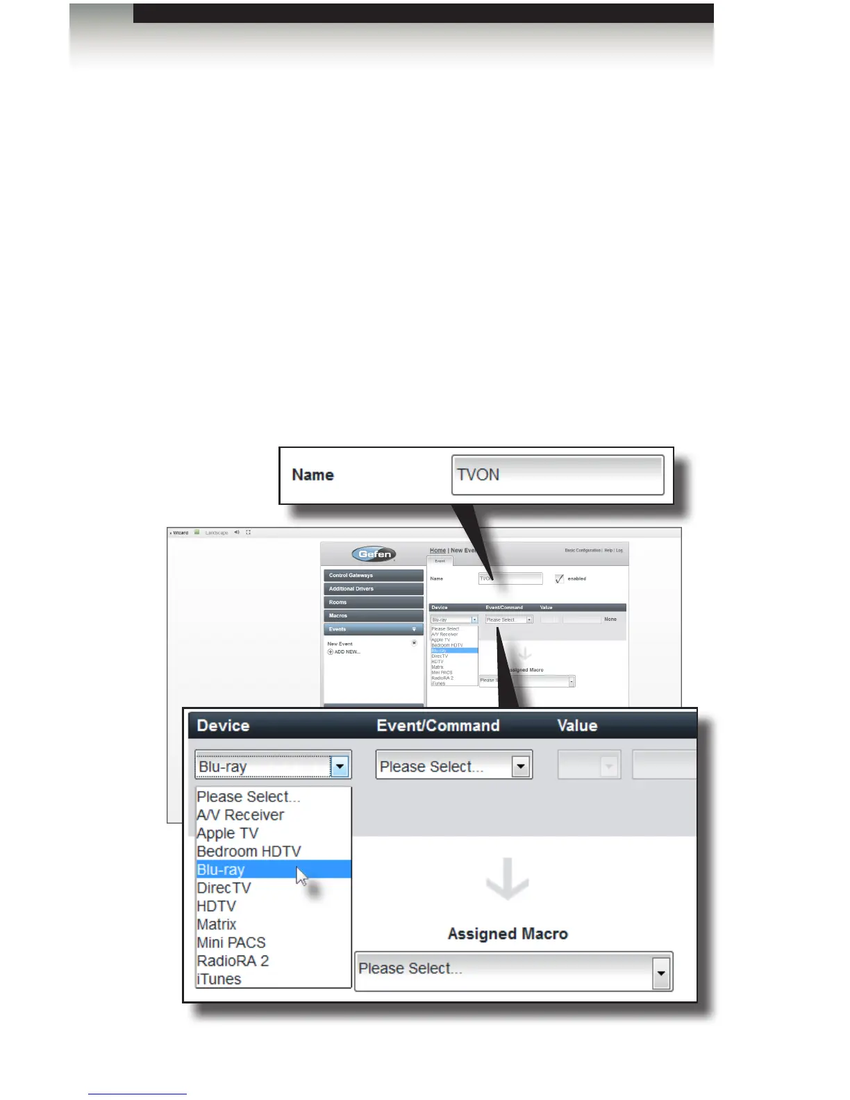 In the example, below, we will create a very simple event that will turn on the TV when