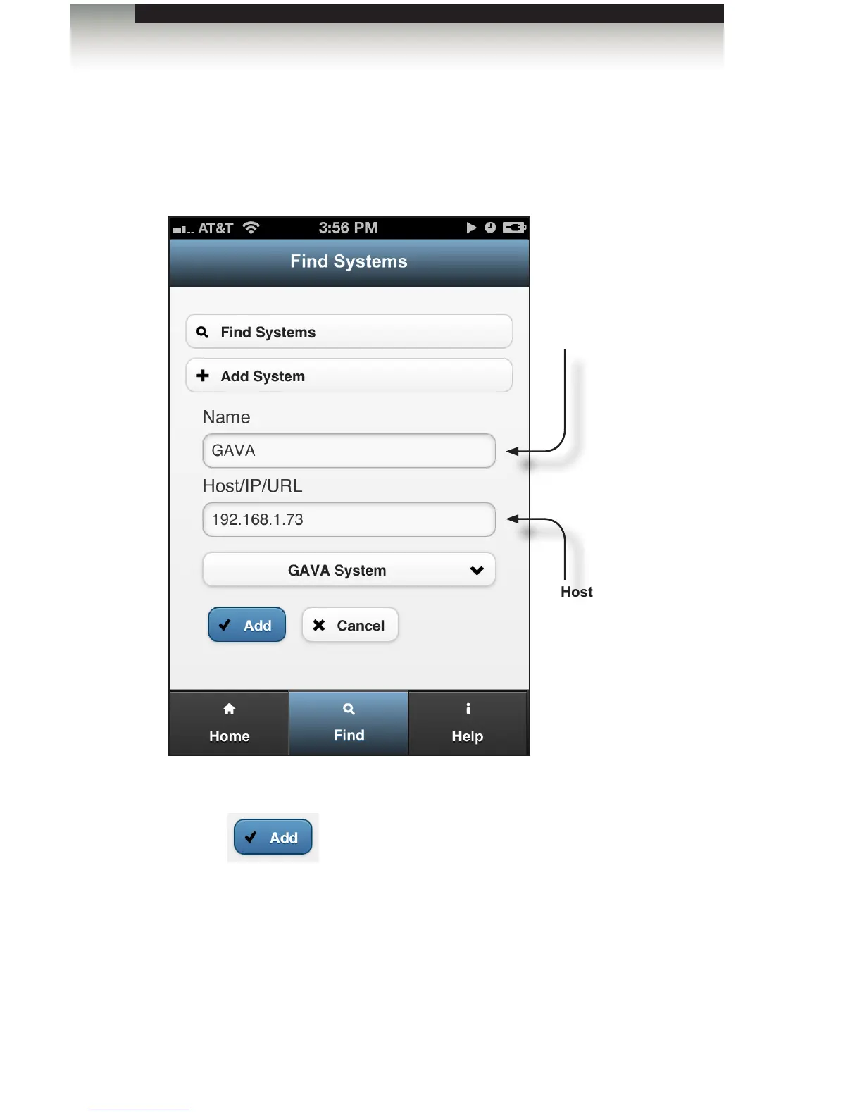 6. Click the button to add the GAVA system to the Home screen.