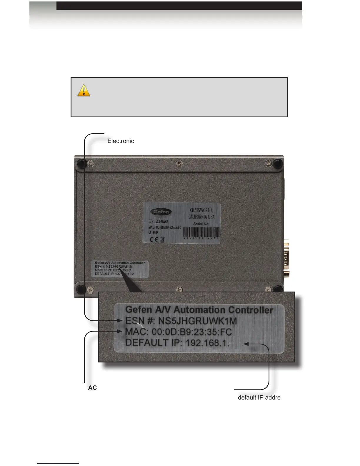 Before connecting the GAVA to a network, locate the label on the bottom of the GAVA.
