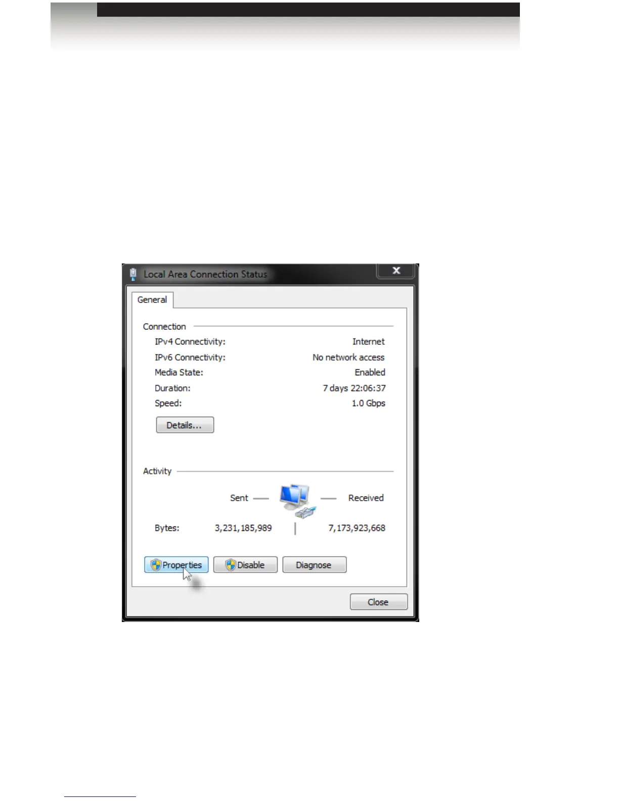 3. Click the Properties button to display the Local Area Connection Properties dialog.
