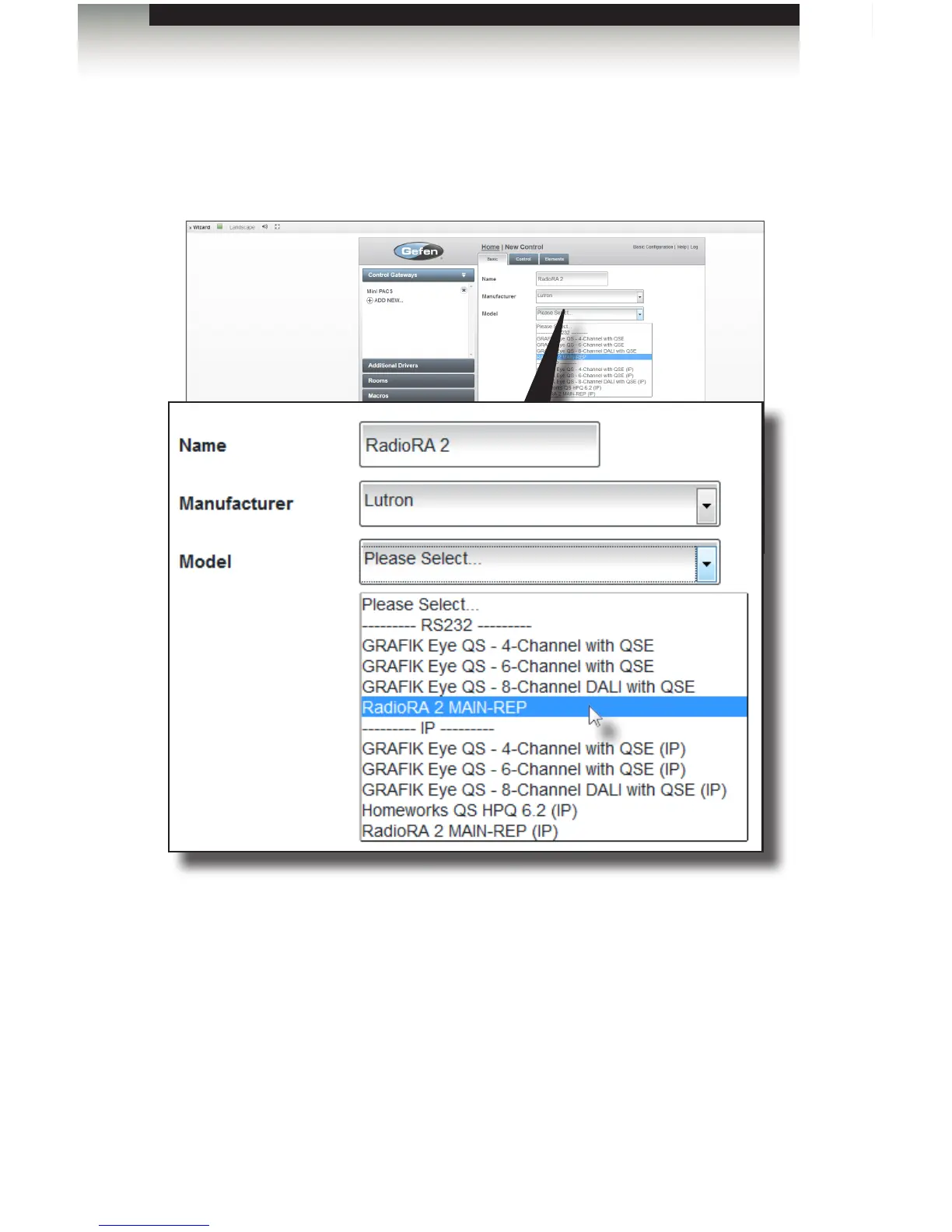 Therefore, we will select RadioRA 2 MAIN-REP [1] from the drop-down list.
