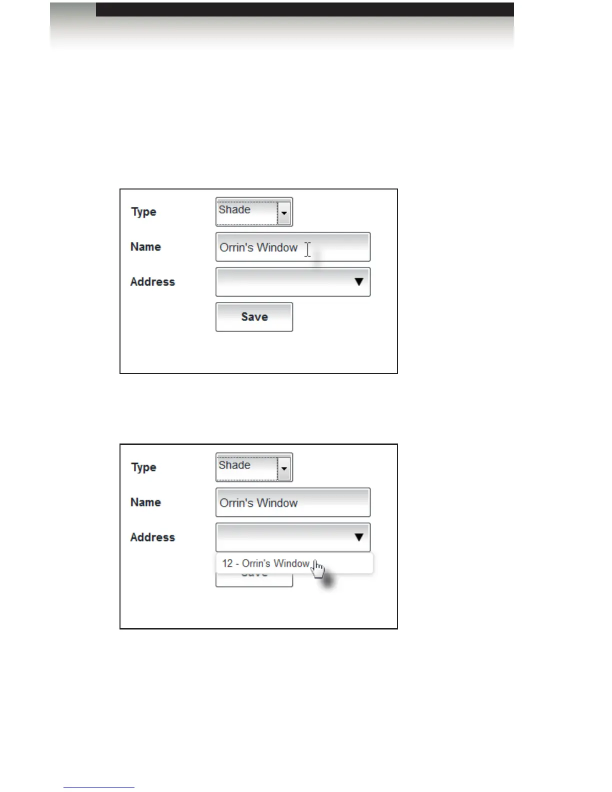 4. Select the button name from the Address drop-down list. The selections displayed in