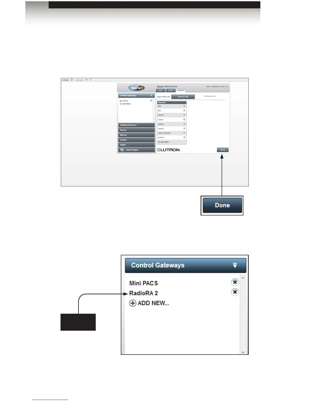 2. Under the Control gateways sidebar button, the new control (in this case, RadioRA 2)