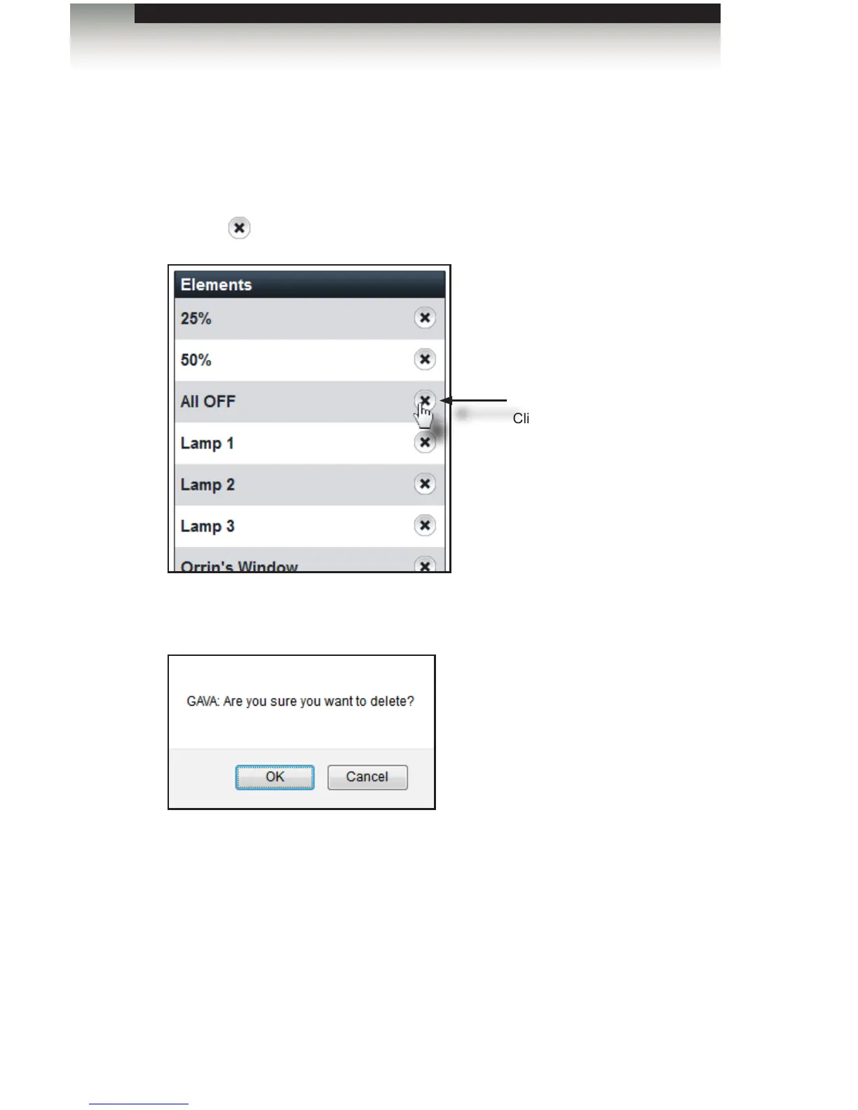 5. Click OK to conrm the deletion of the element. Click Cancel to return to the