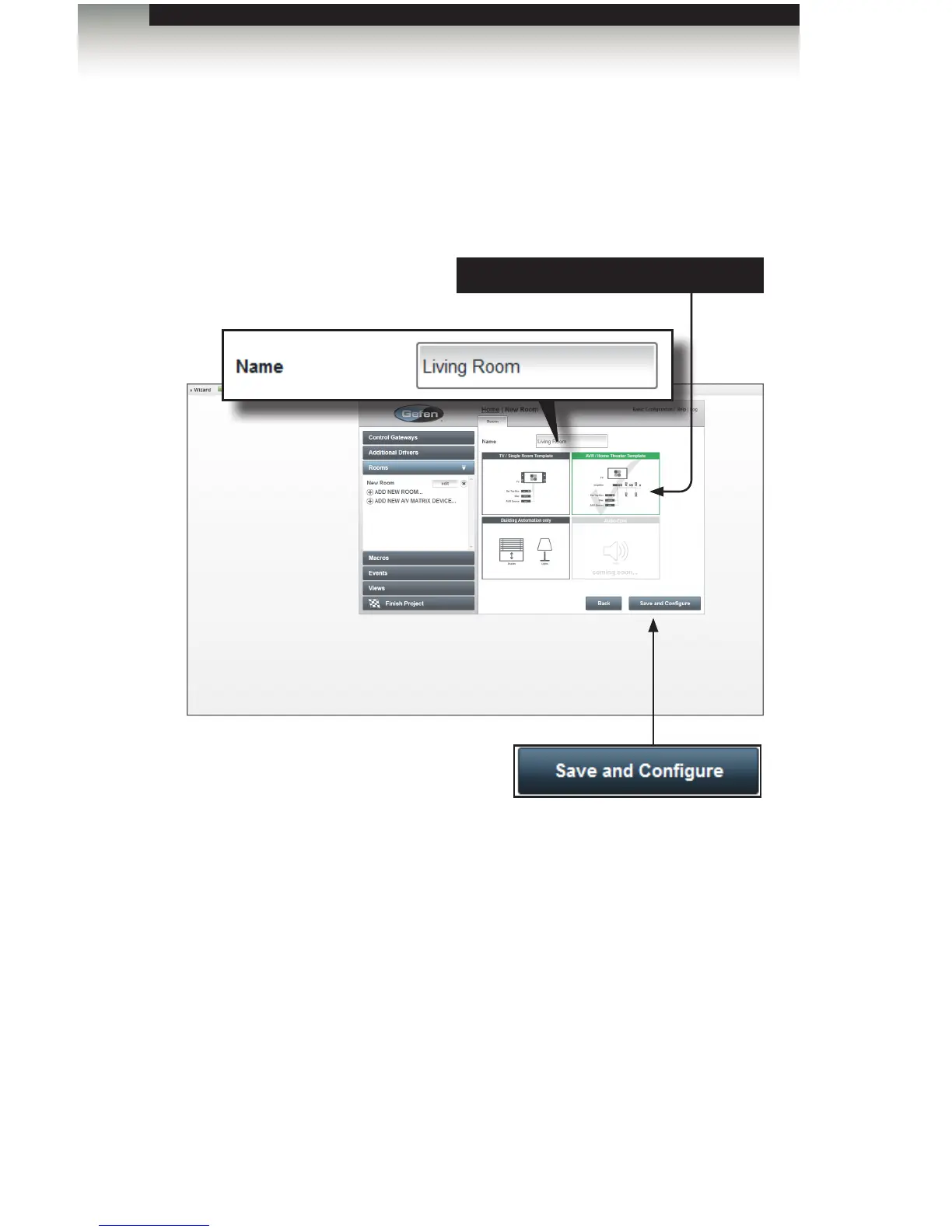 The conguration screen for the named room (in this case, “Living Room”) will be